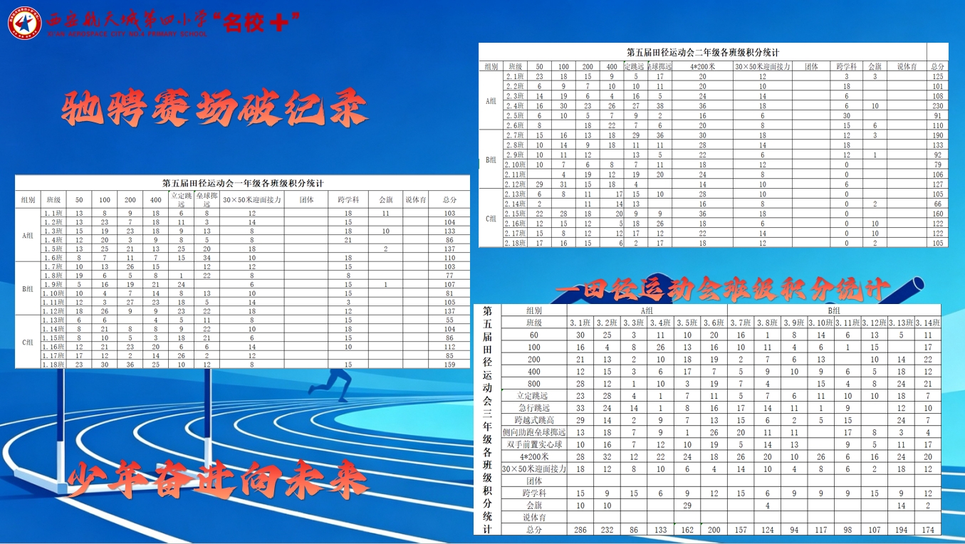 航天城第四小学春季田径运动会班级积分榜