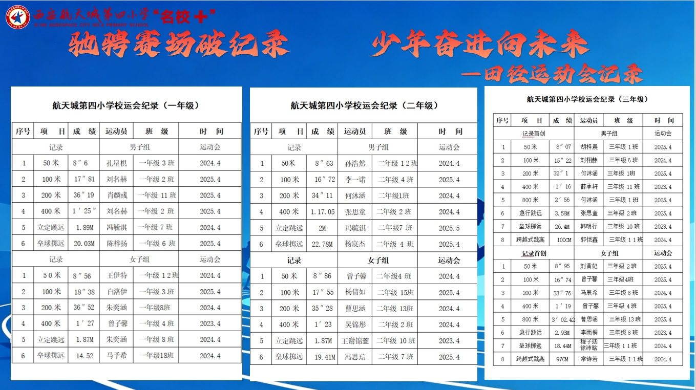 西安航天城第四小学春季田径运动会记录榜