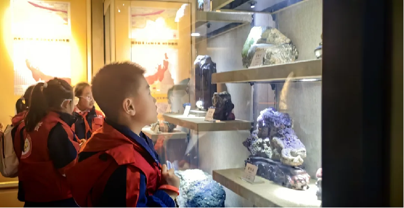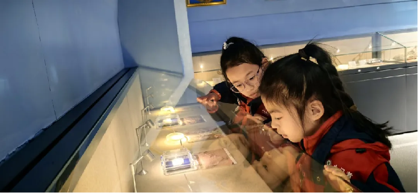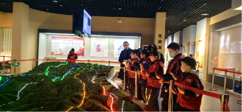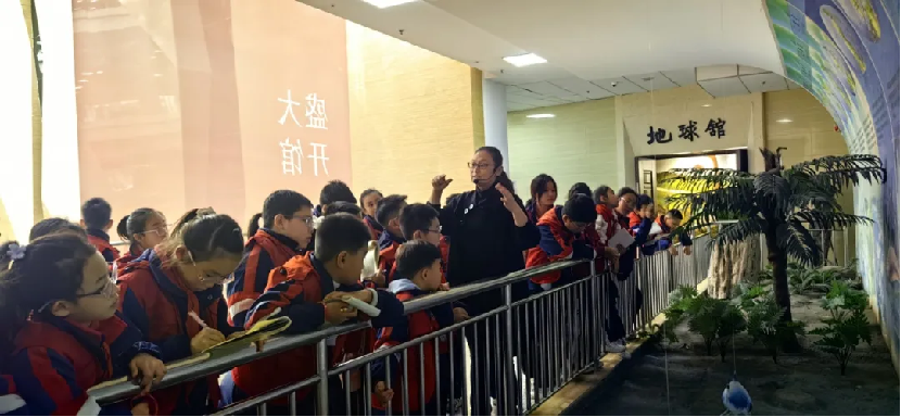 沿着参观路线,师生们走进历史馆,青铜纹饰与陶器釉光中的文明脉络渐次清晰。他们以文学视角品读文物背后的故事,收获人文素养的熏陶。地球馆的模拟地质剖面和矿物标本,呈现了地球演化的壮阔历程。面对琳琅满目的岩石标本,同学们认真聆听讲解,互相讨论地层构造特点。他们的指尖拂过岩石纹理,仿佛能触摸到板块运动的痕迹。在讲解老师的带领下,大家移步生物馆。从远古化石到现代标本的生命演进序列,引发了师生们的阵阵惊叹。小编辑小记者们不时记录生物特征,积极向讲解老师提问,在观察笔记中整理出生命进化的关键阶段。